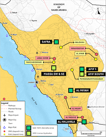 SDC has been actively adding to its project portfolio. The license applications for Massa SW and Massa SE have been accepted by the Saudi Arabian Ministry of Industry and Minerals (“MIM”) and are awaiting grant. SDC has also been participating in the MIM Round 9 Auction and results of the auction will be forthcoming. SDC expects to add approximately 700 km² along proven VMS trends through these efforts.